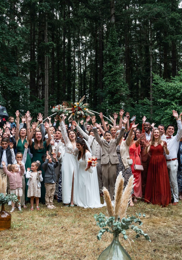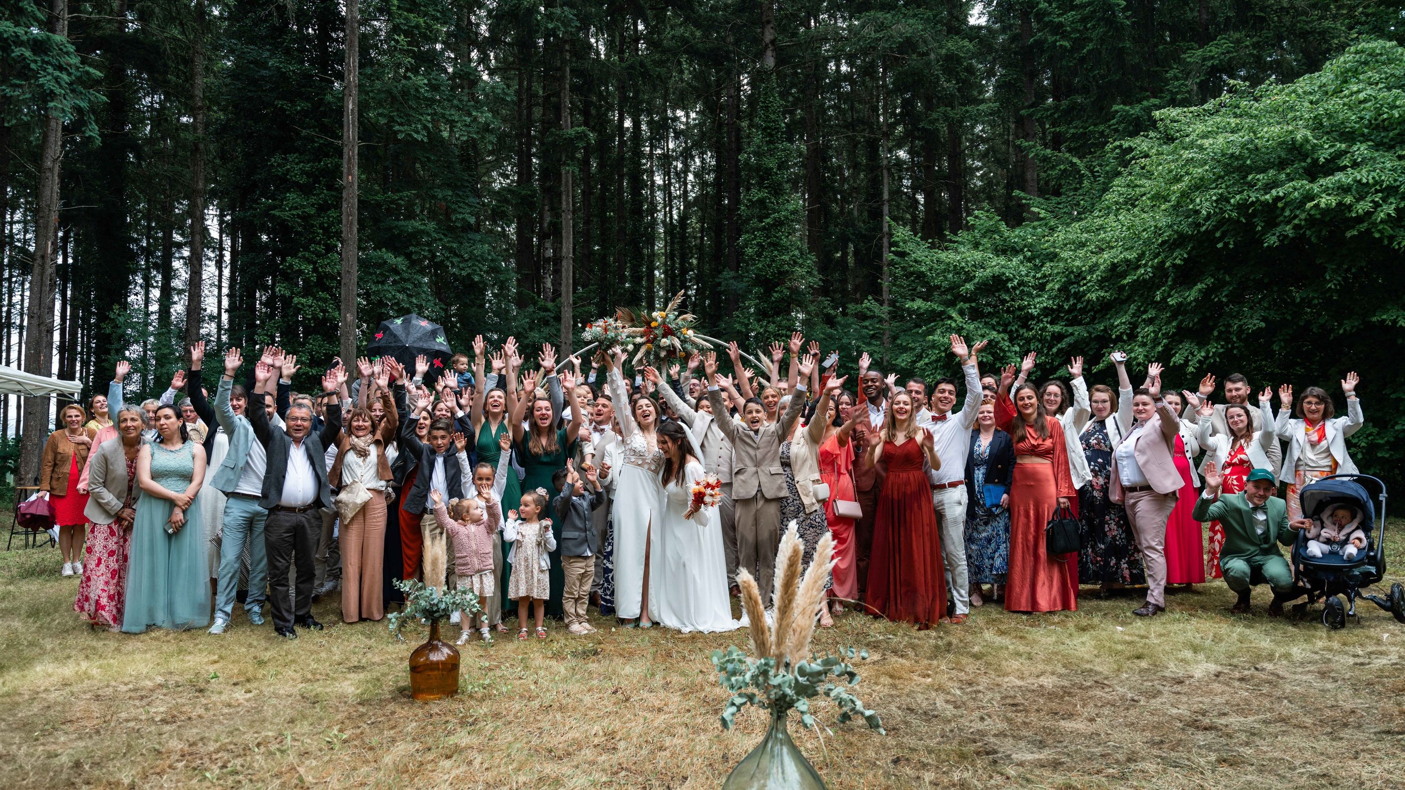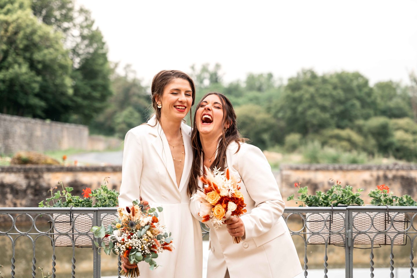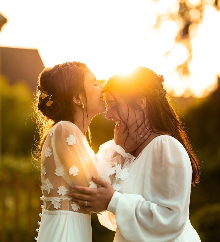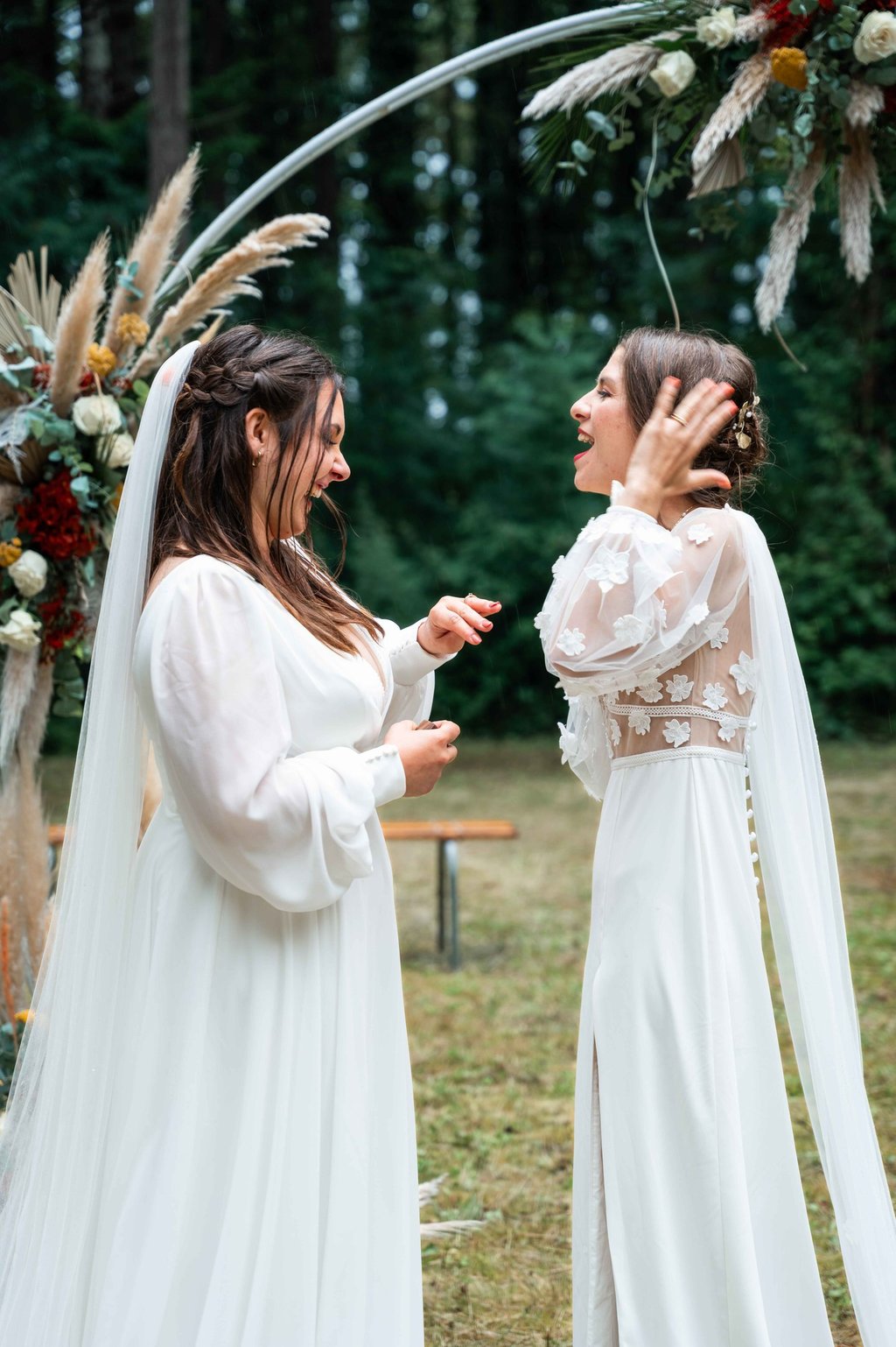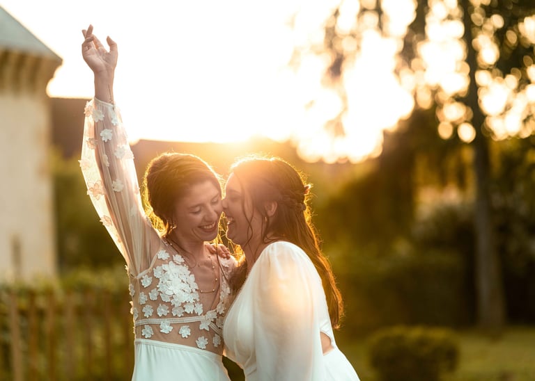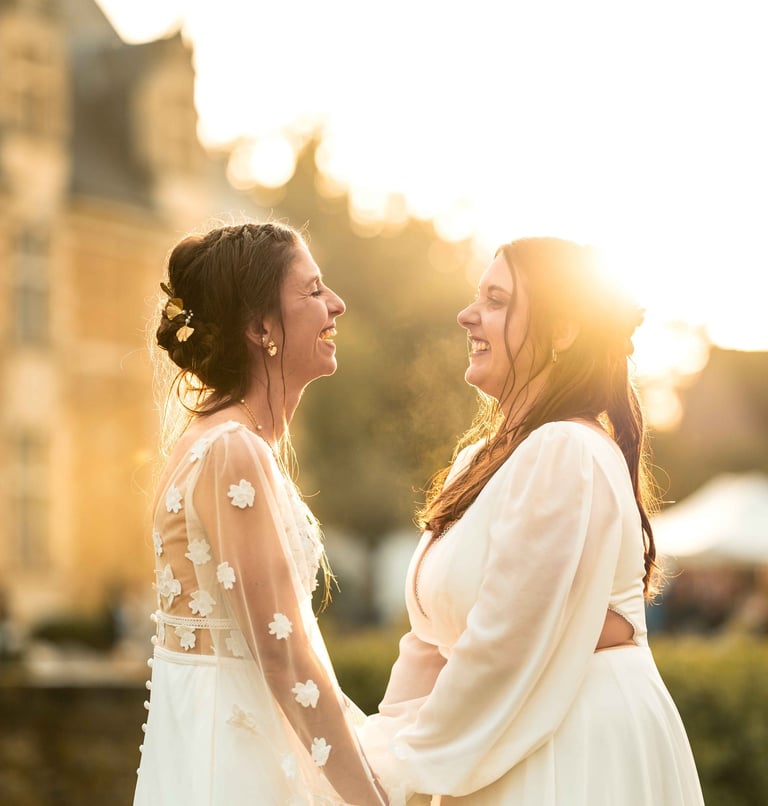 Concernant Amandine et Elsa, de bonnes fêtardes bons délires, nous avons rarement vu des mariées aussi peu stressées, surtout au vu du temps et de la pluie qui est tombée en pleine cérémonie laïque !