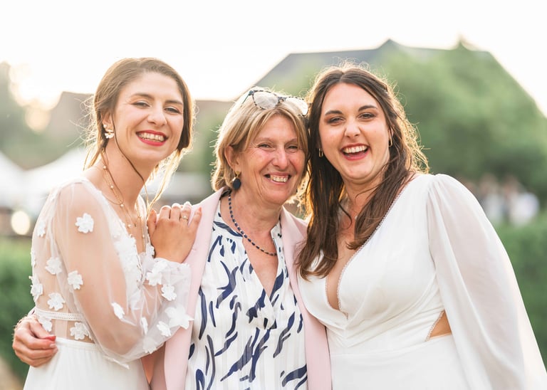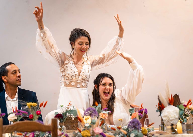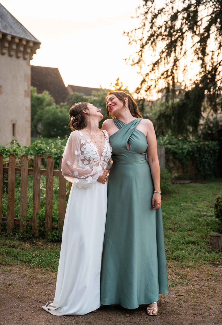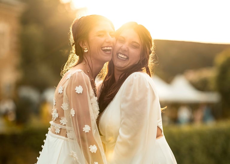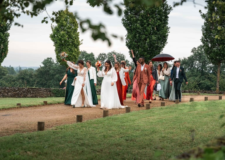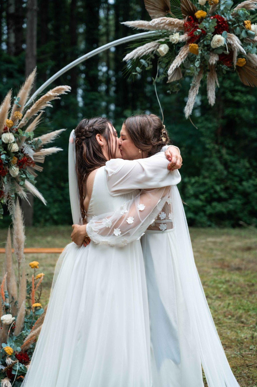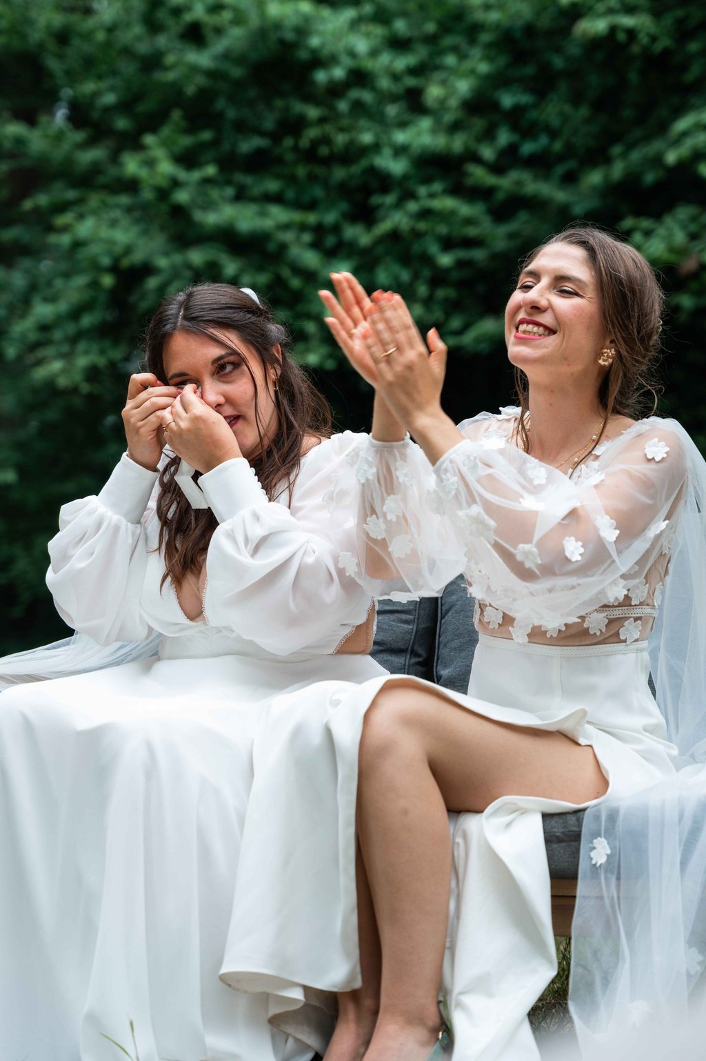 Concernant Amandine et Elsa, de bonnes fêtardes bons délires, nous avons rarement vu des mariées aussi peu stressées, surtout au vu du temps et de la pluie qui est tombée en pleine cérémonie laïque !
