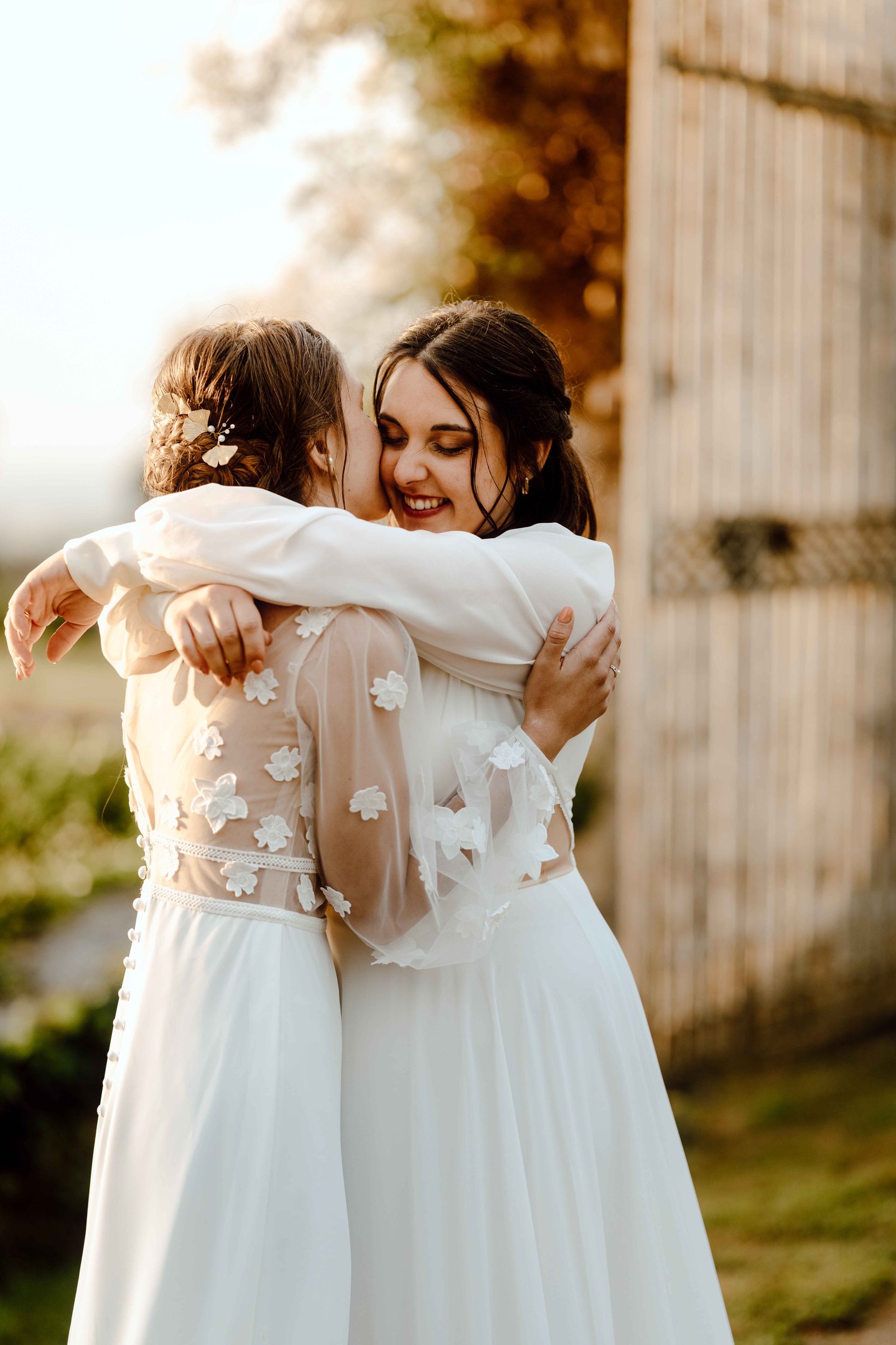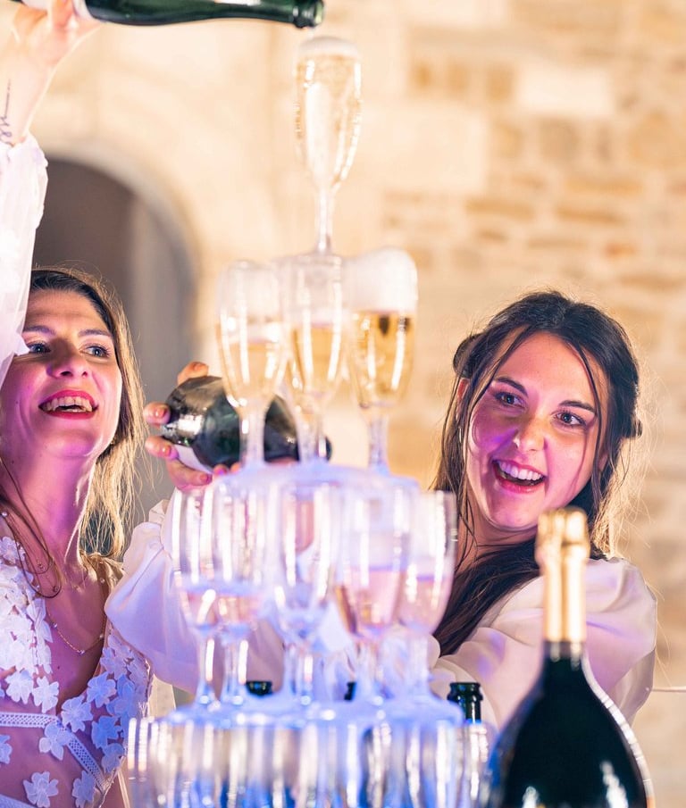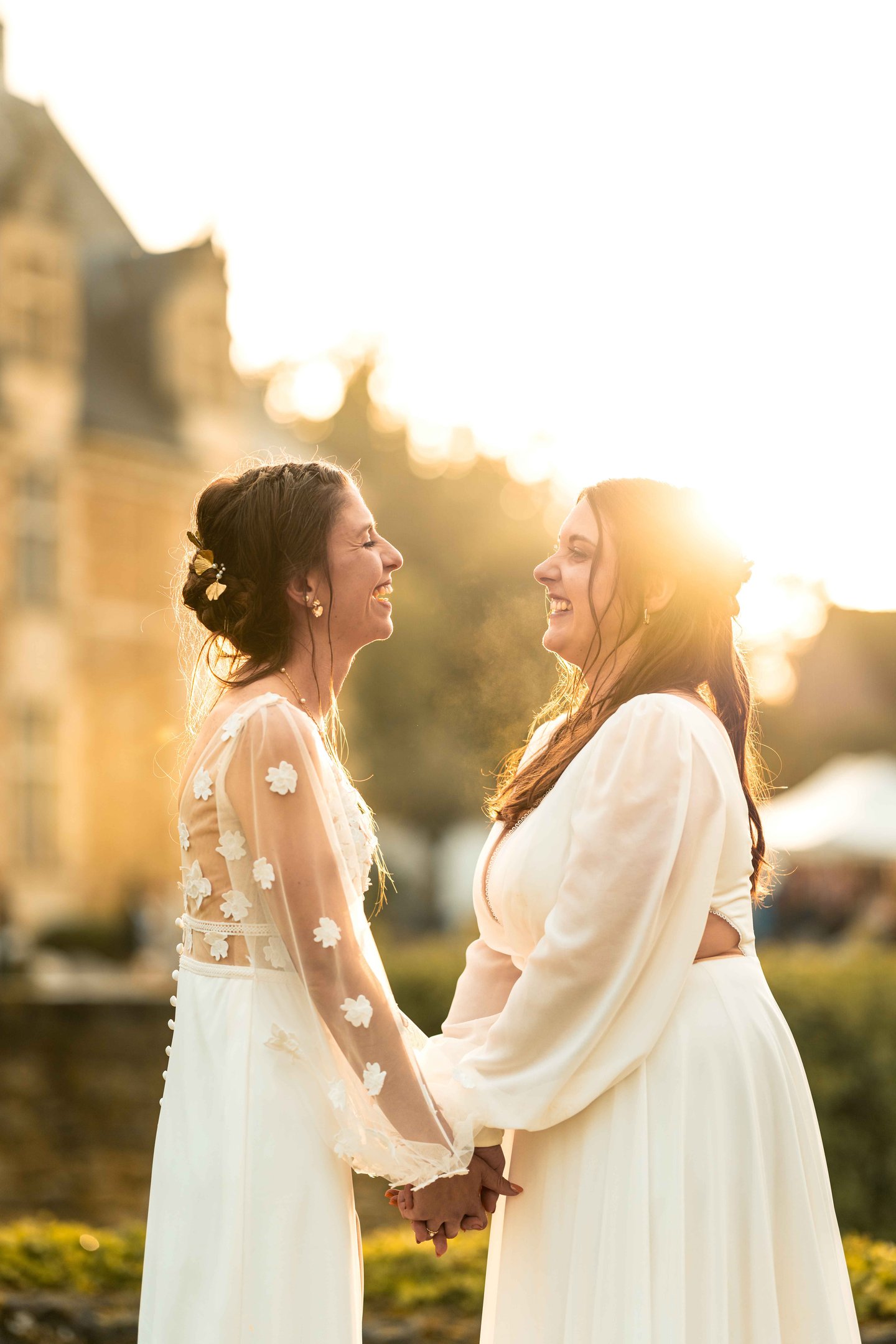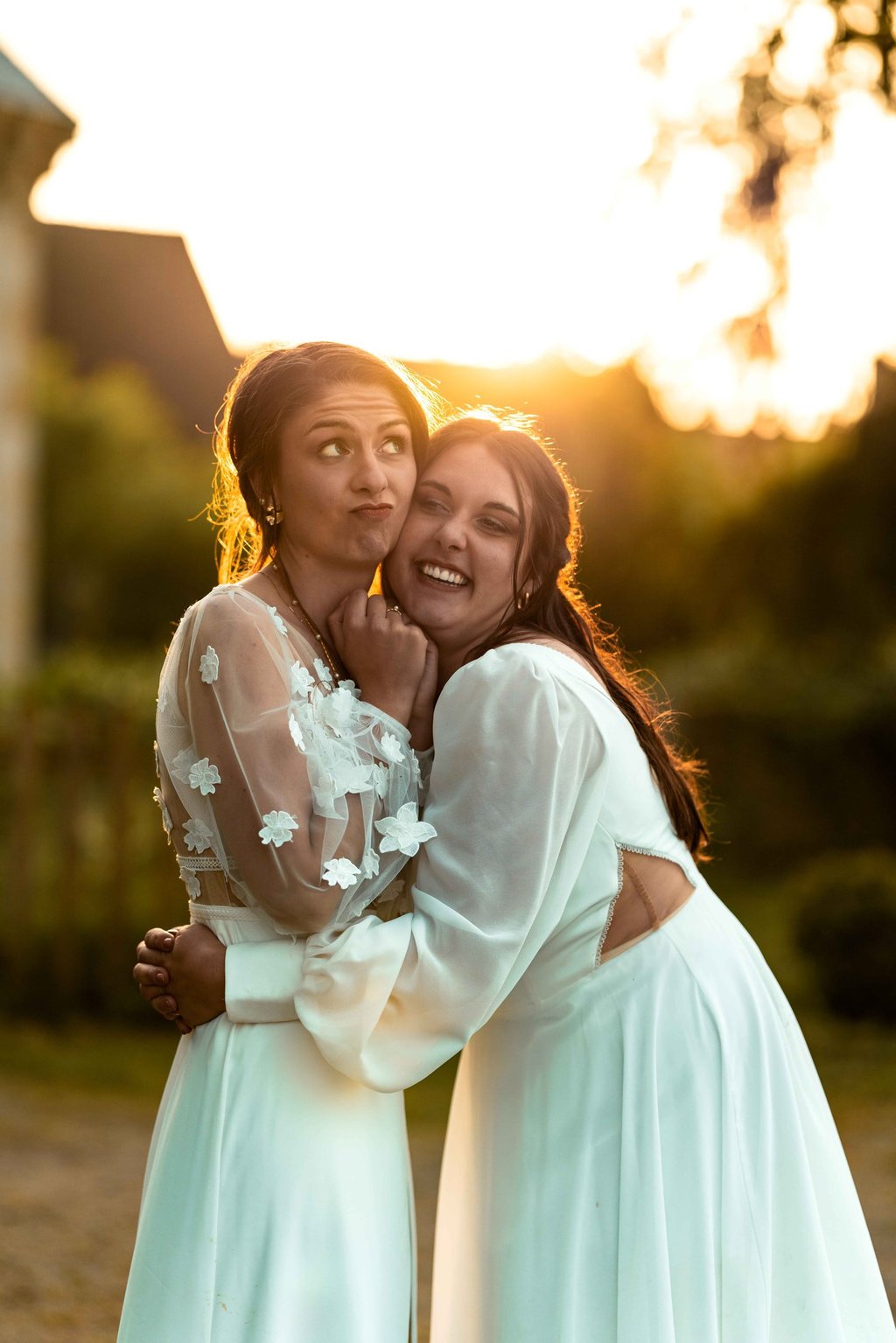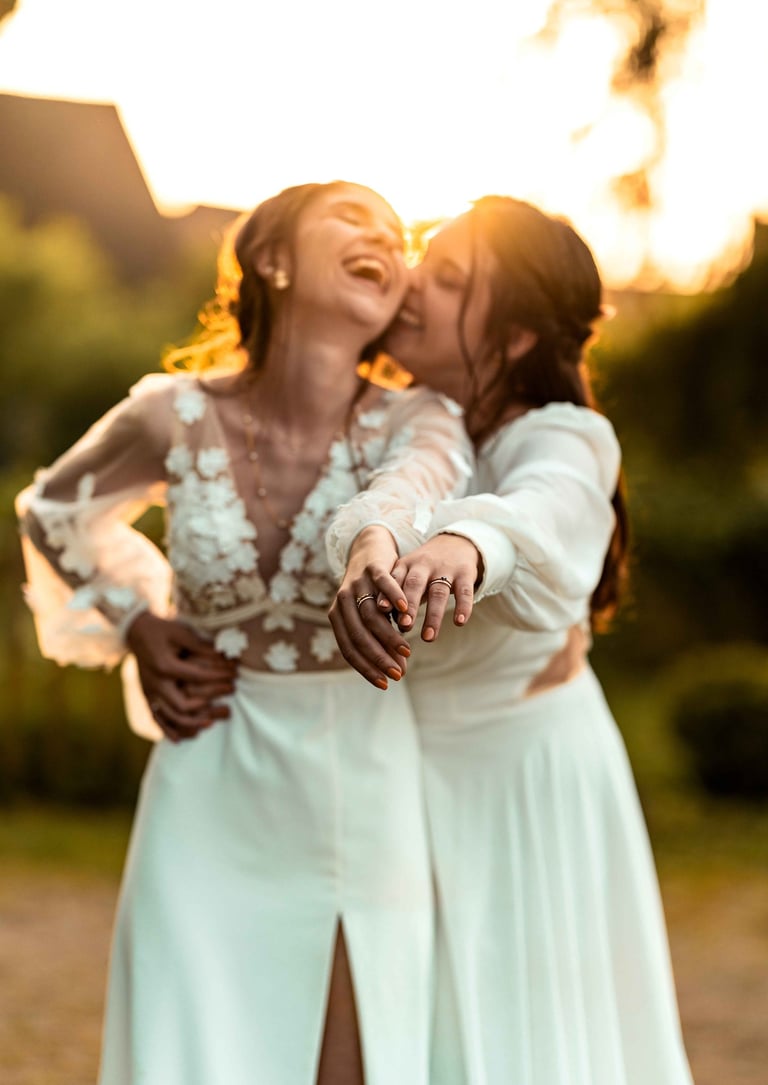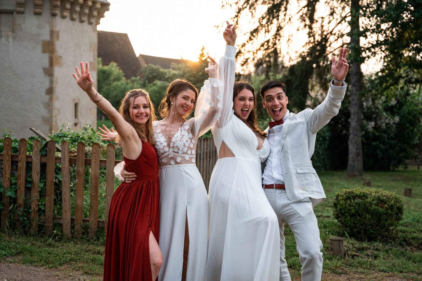 Concernant Amandine et Elsa, de bonnes fêtardes bons délires, nous avons rarement vu des mariées aussi peu stressées, surtout au vu du temps et de la pluie qui est tombée en pleine cérémonie laïque !