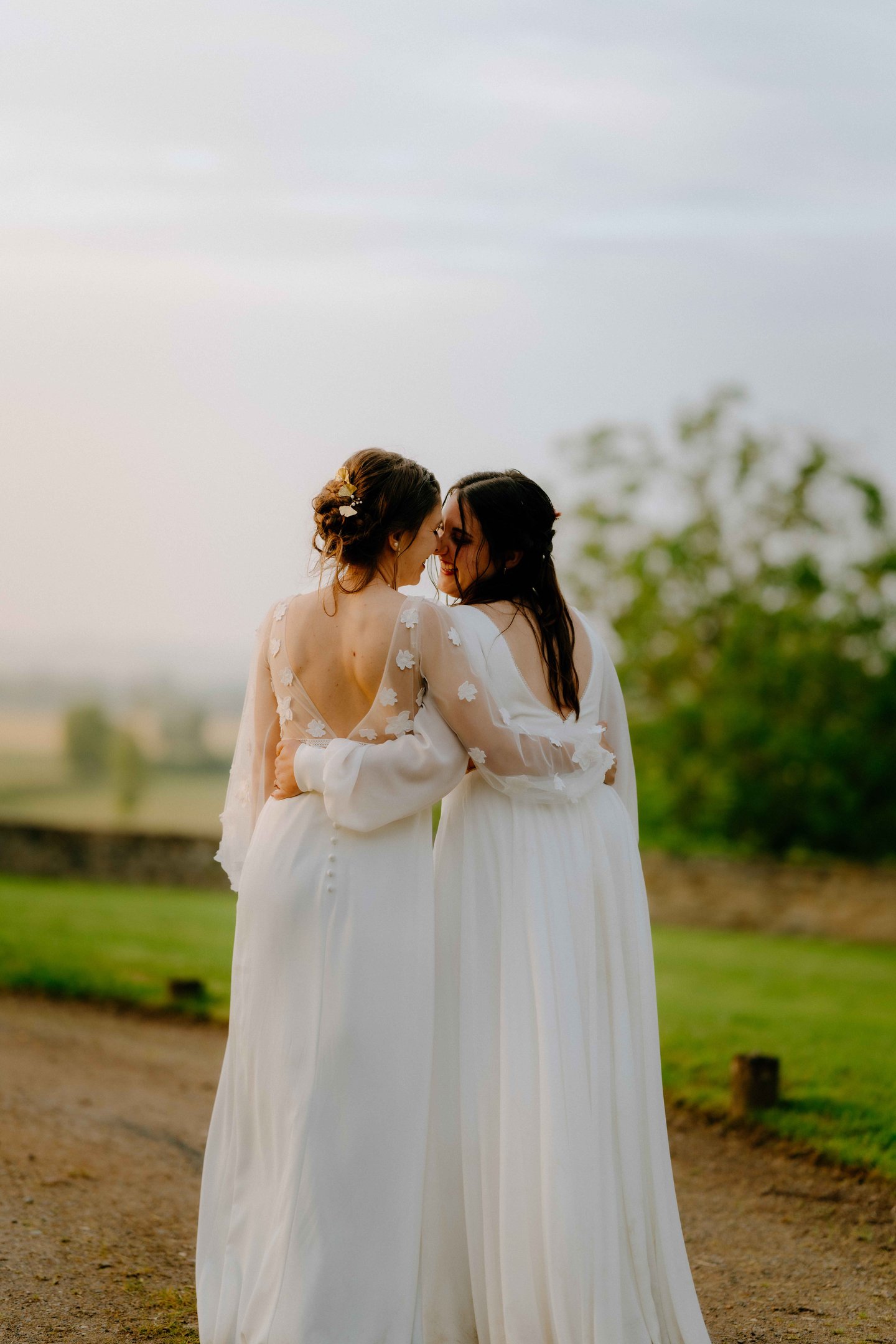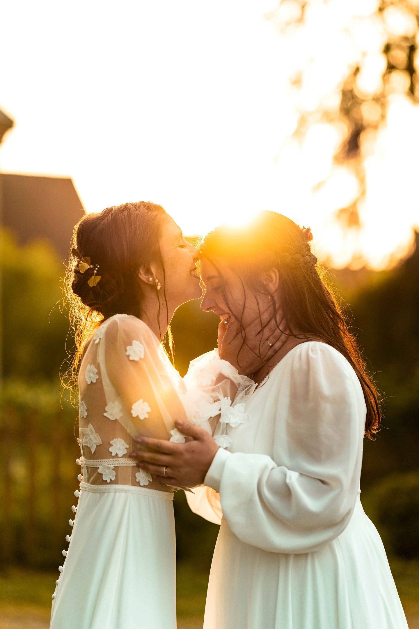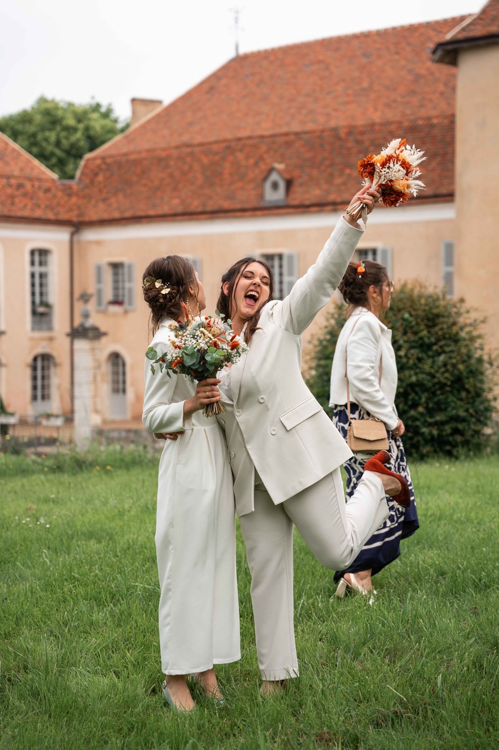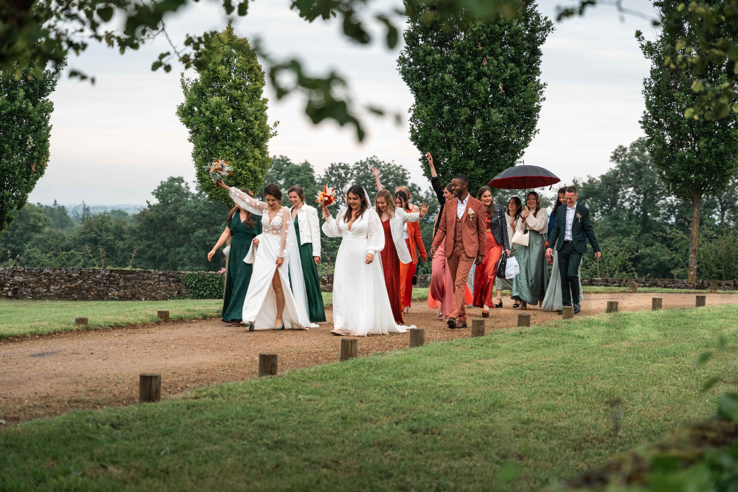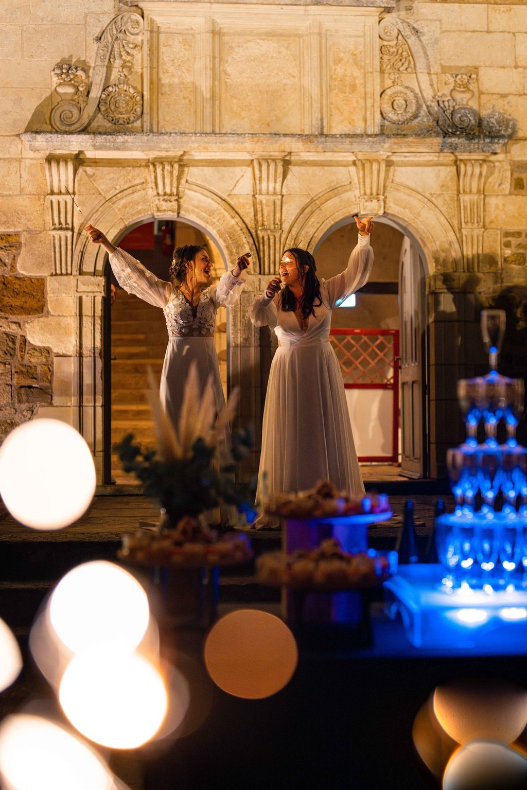 Concernant Amandine et Elsa, de bonnes fêtardes bons délires, nous avons rarement vu des mariées aussi peu stressées, surtout au vu du temps et de la pluie qui est tombée en pleine cérémonie laïque !