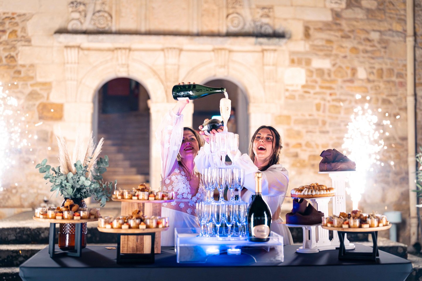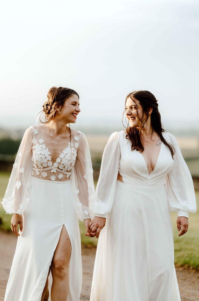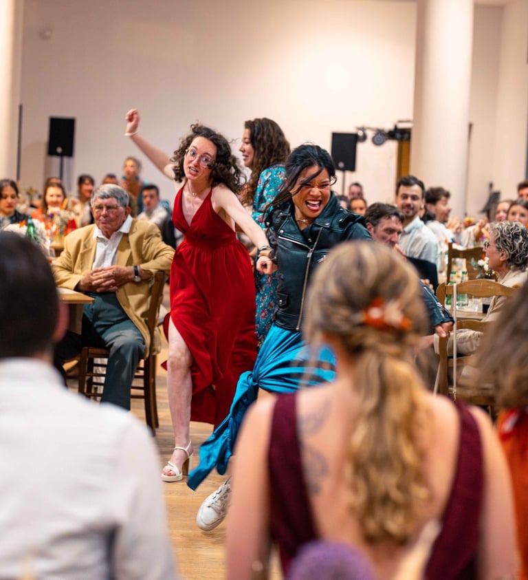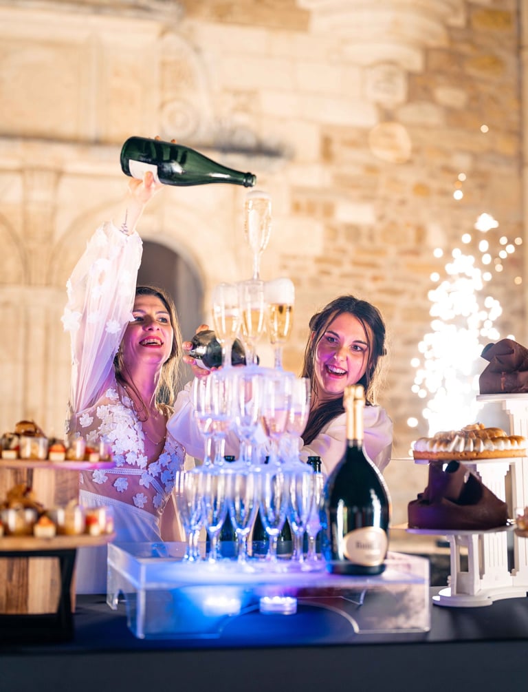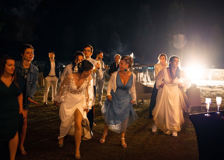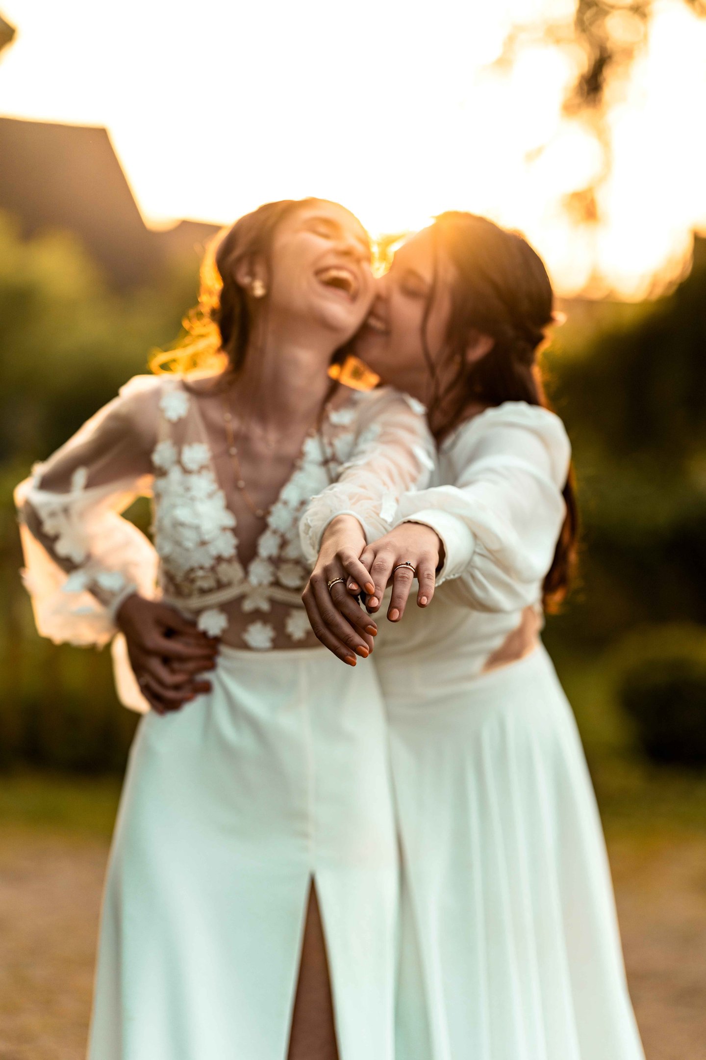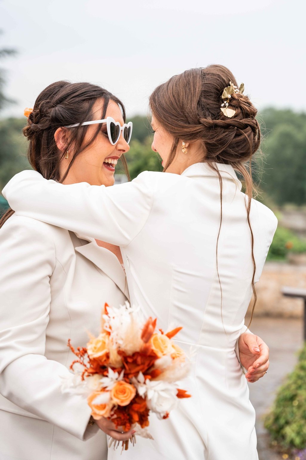 Concernant Amandine et Elsa, de bonnes fêtardes bons délires, nous avons rarement vu des mariées aussi peu stressées, surtout au vu du temps et de la pluie qui est tombée en pleine cérémonie laïque !