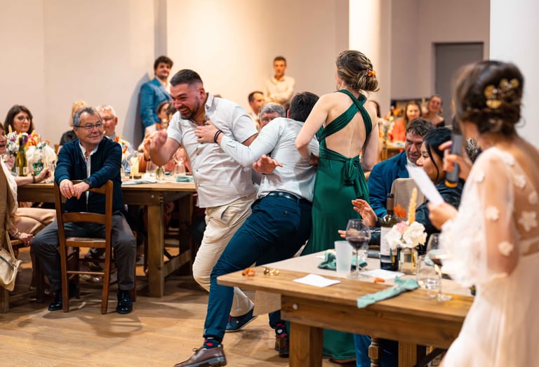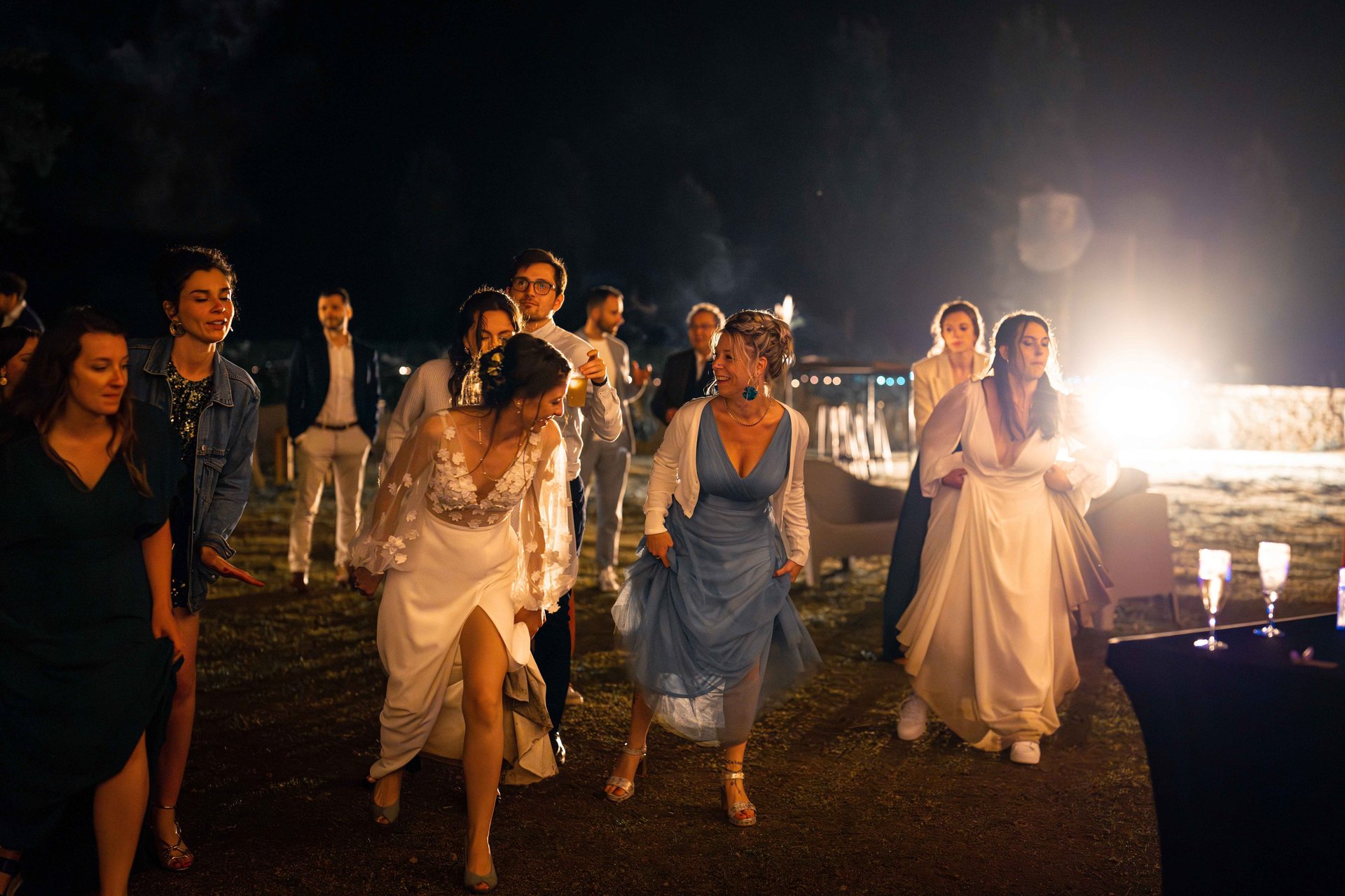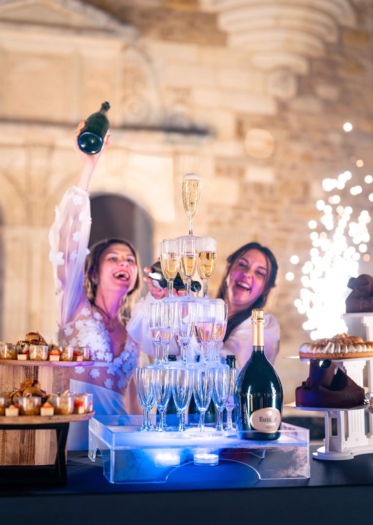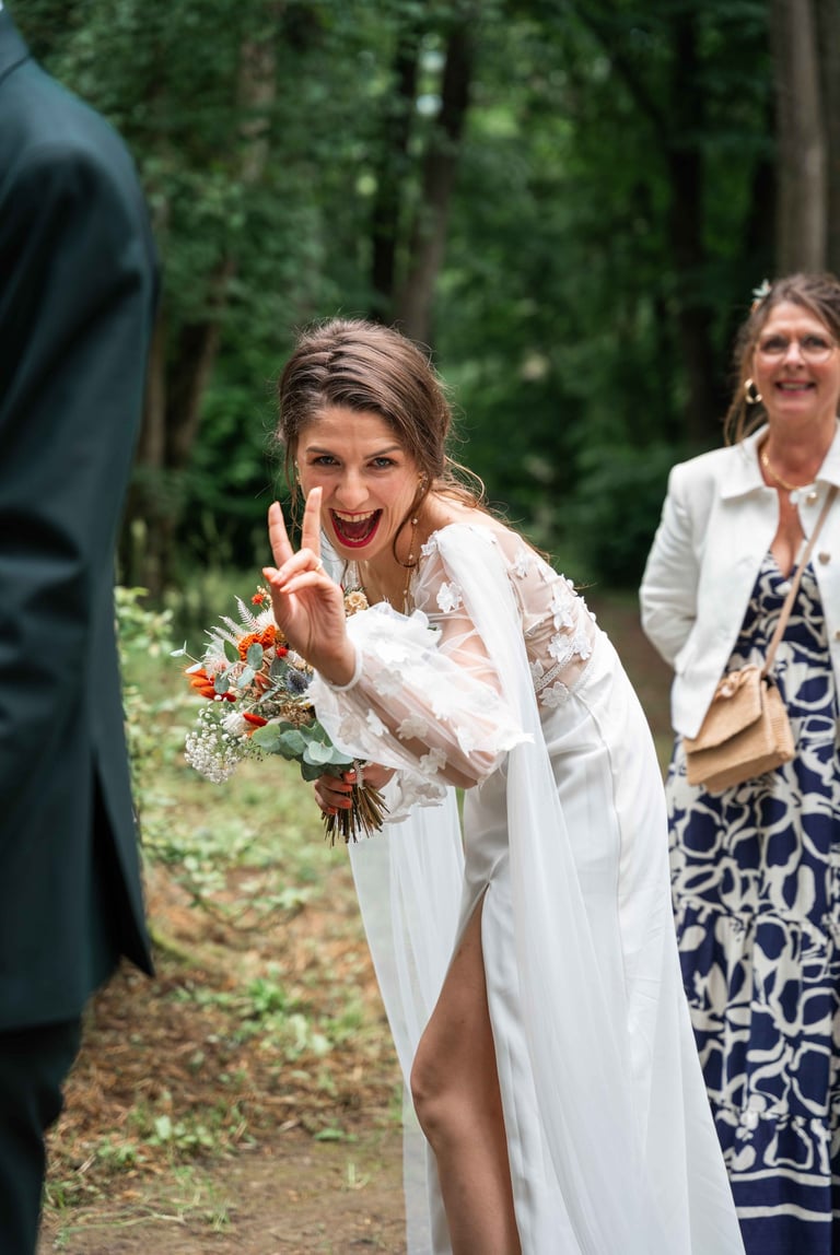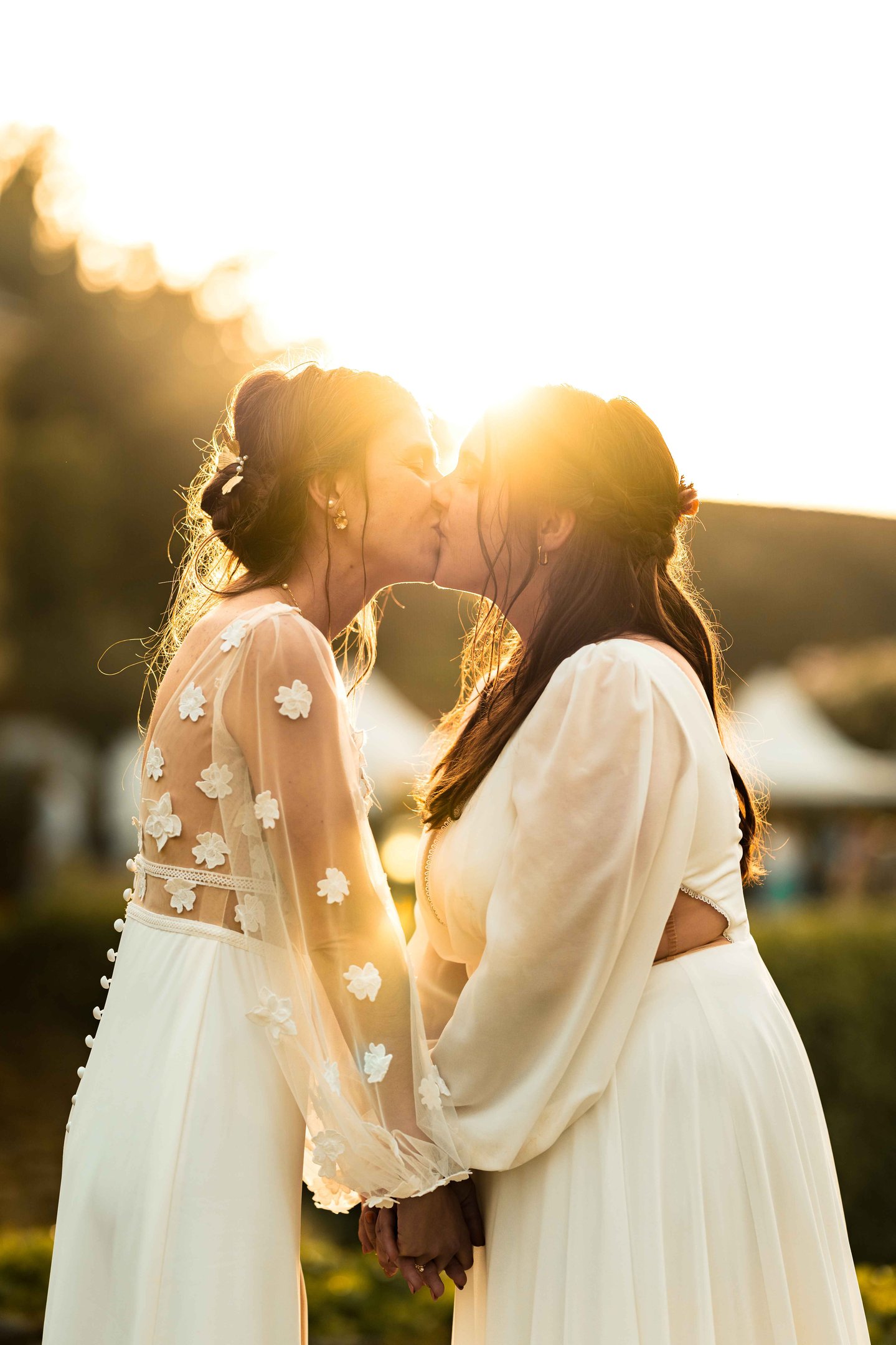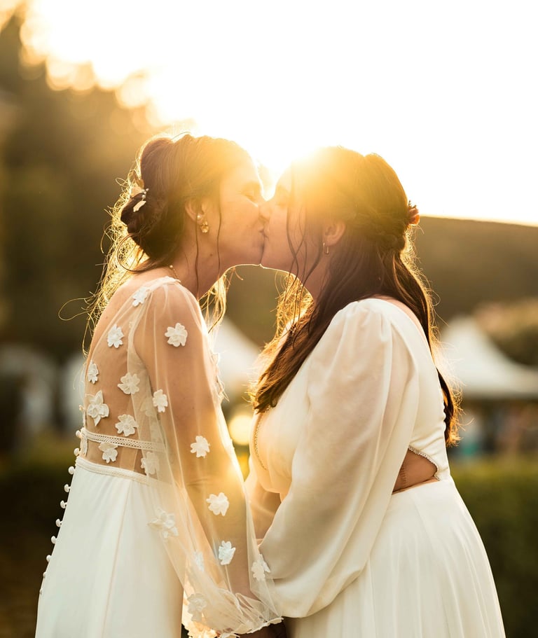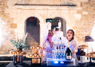 Concernant Amandine et Elsa, de bonnes fêtardes bons délires, nous avons rarement vu des mariées aussi peu stressées, surtout au vu du temps et de la pluie qui est tombée en pleine cérémonie laïque !