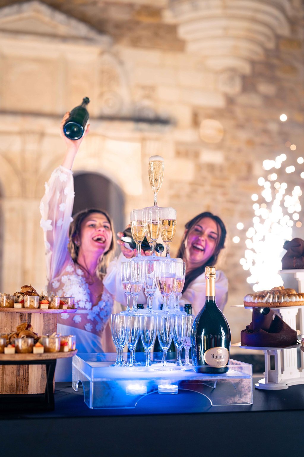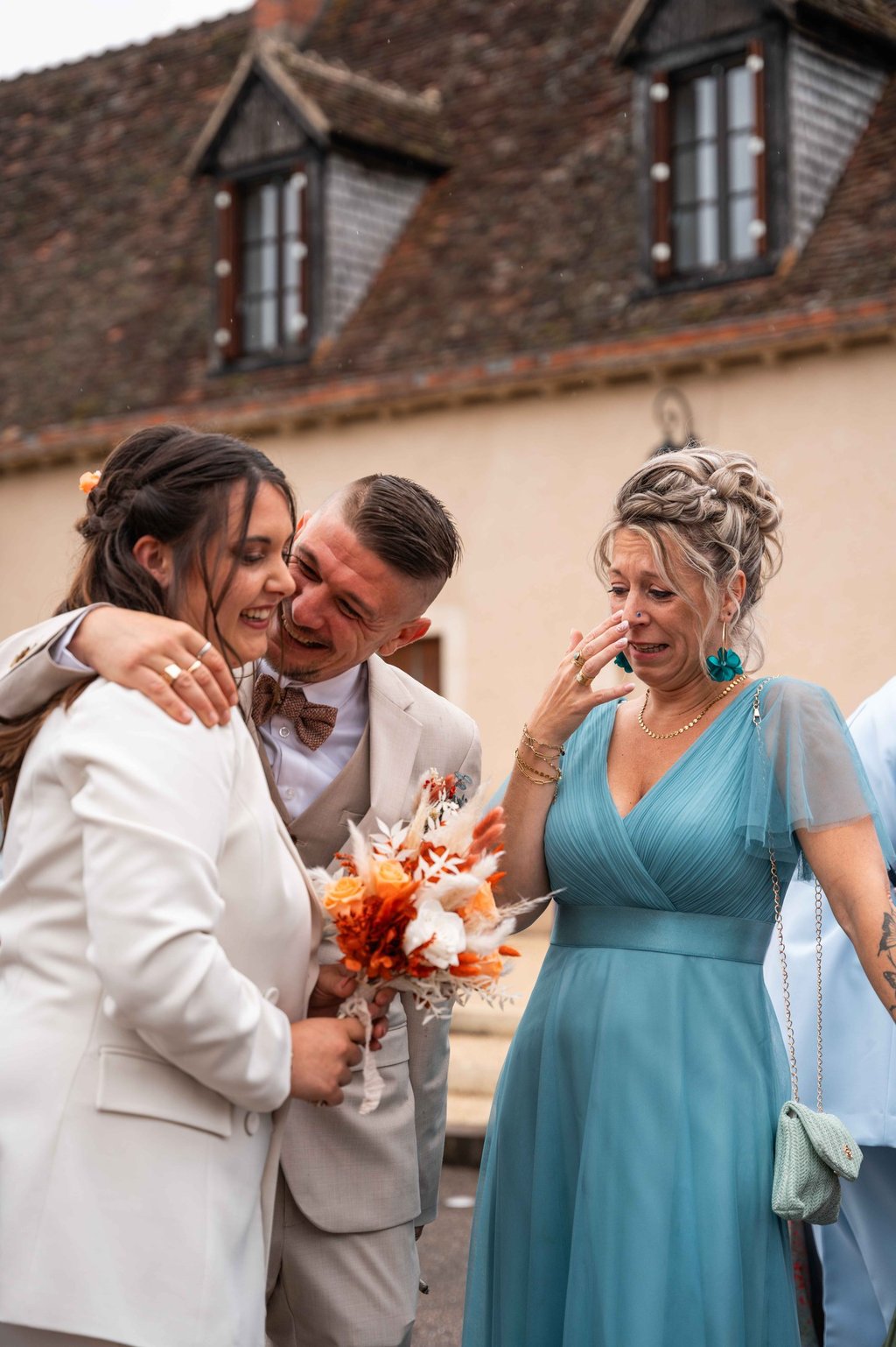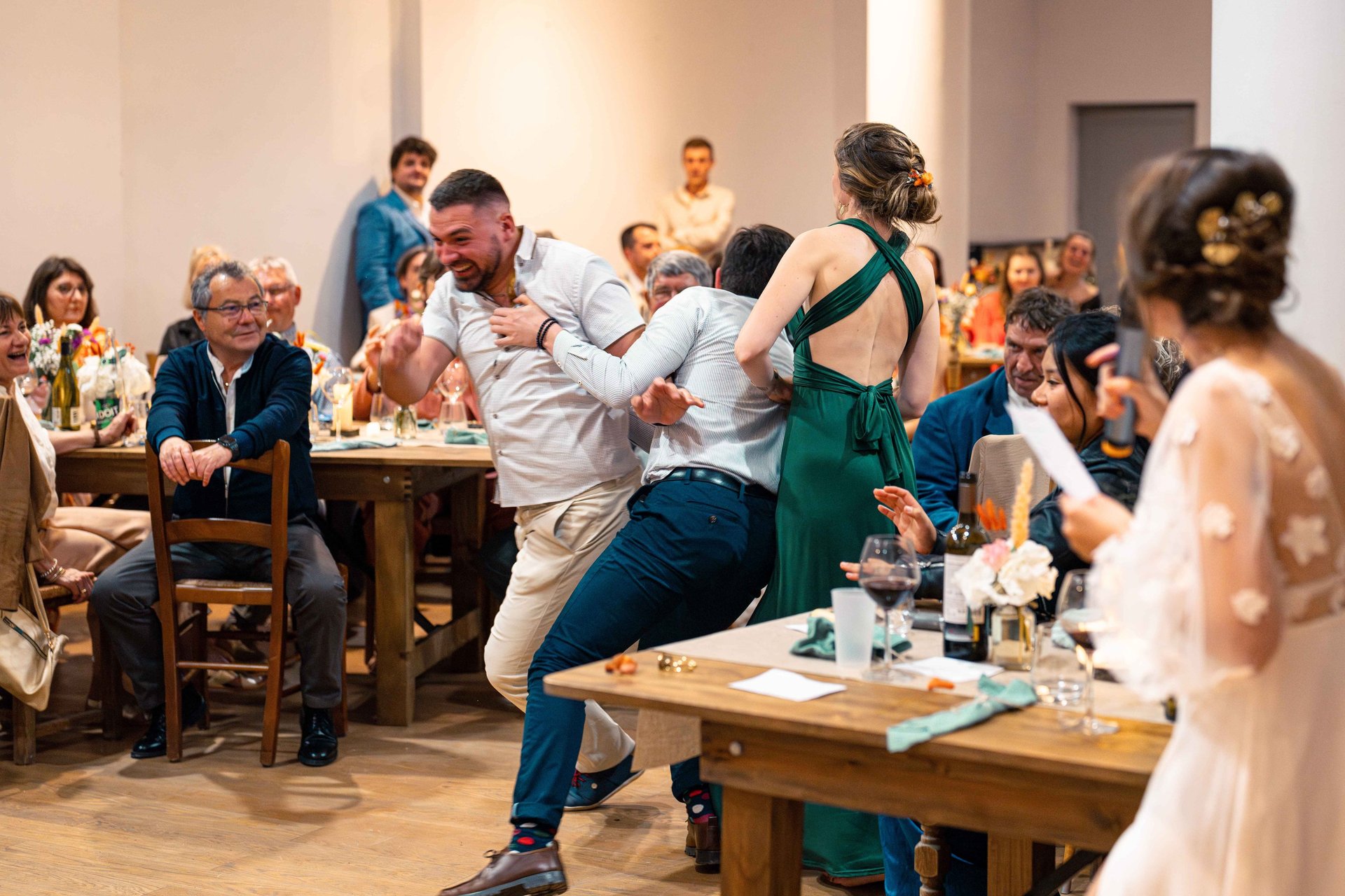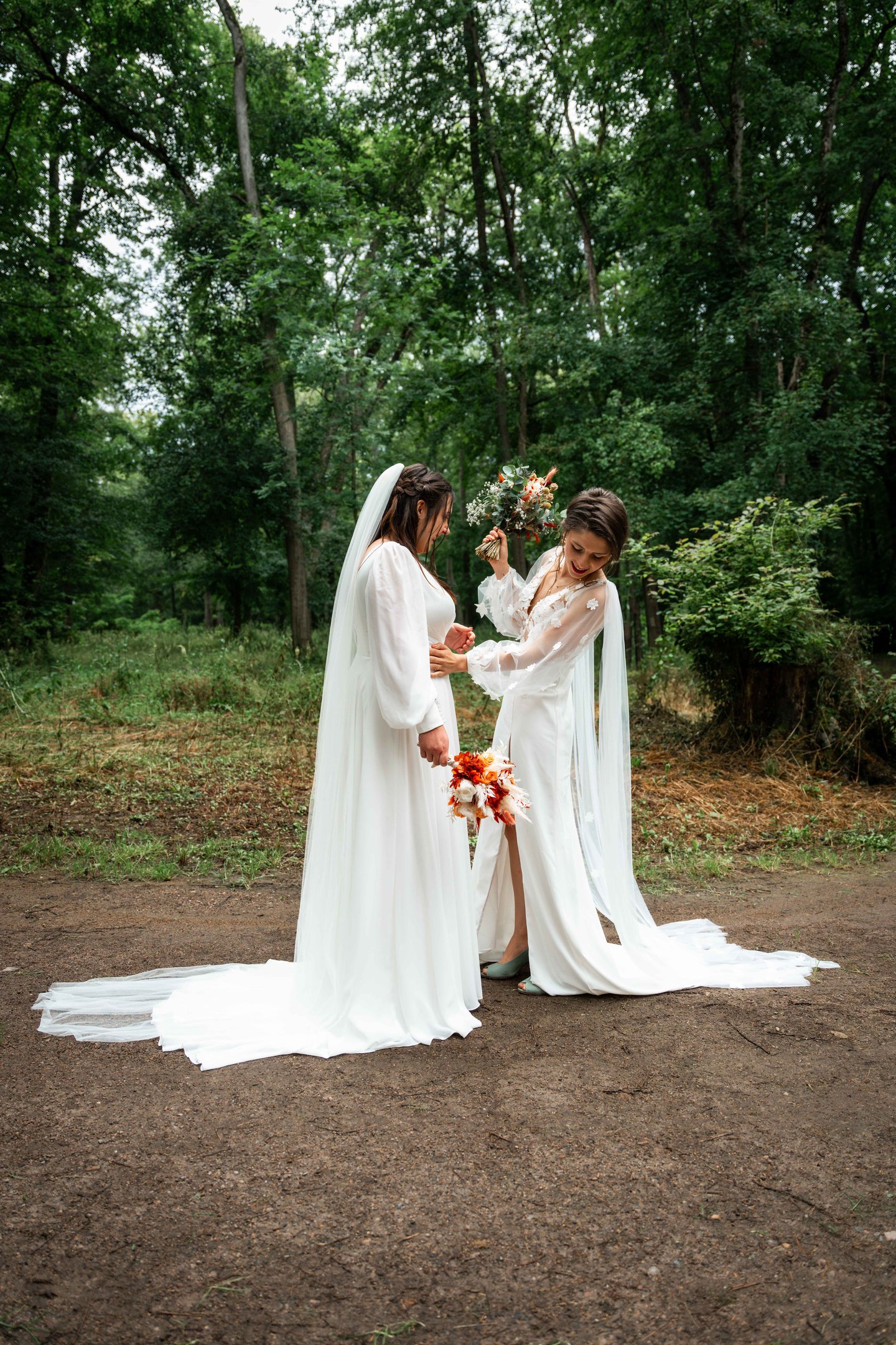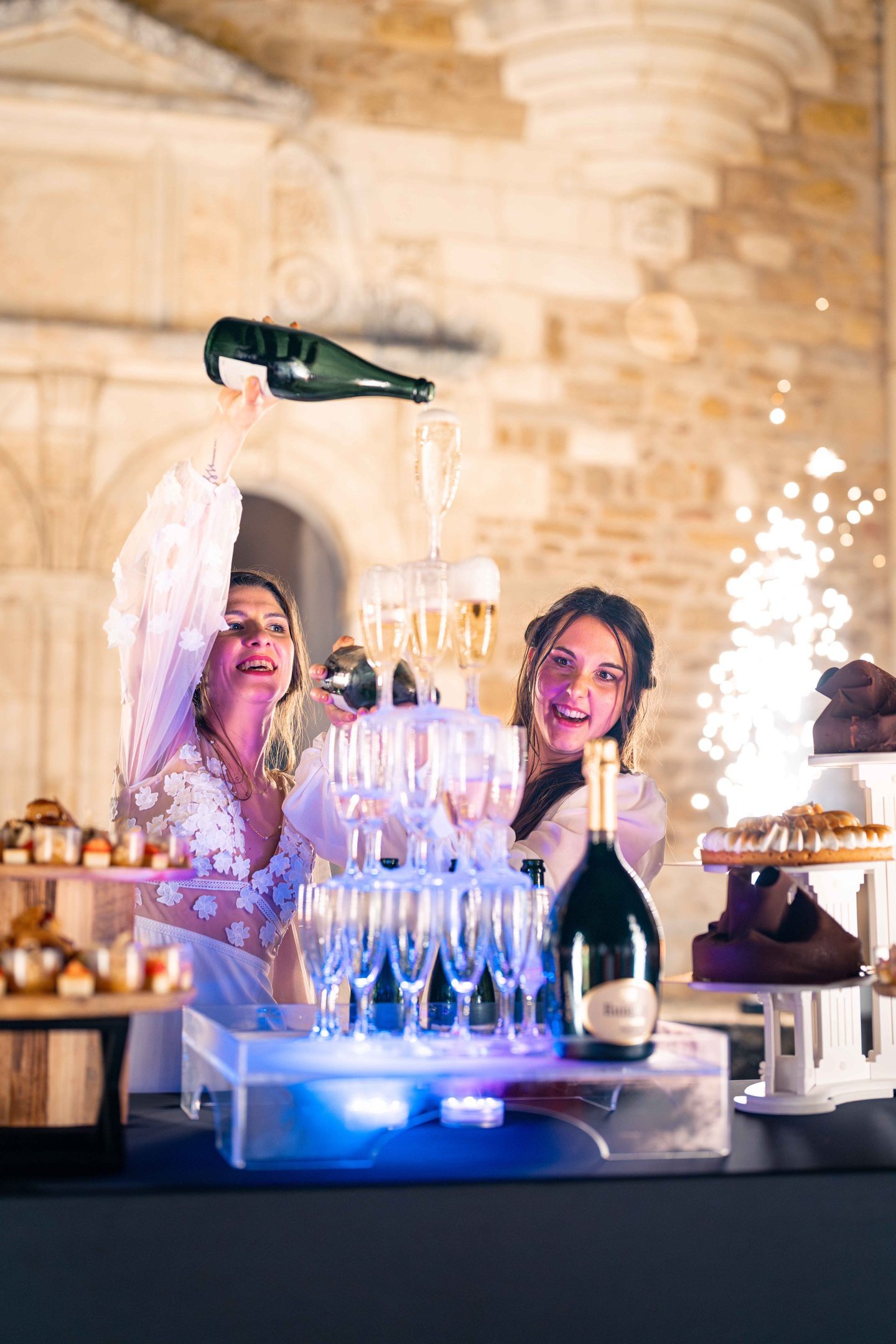 Concernant Amandine et Elsa, de bonnes fêtardes bons délires, nous avons rarement vu des mariées aussi peu stressées, surtout au vu du temps et de la pluie qui est tombée en pleine cérémonie laïque !