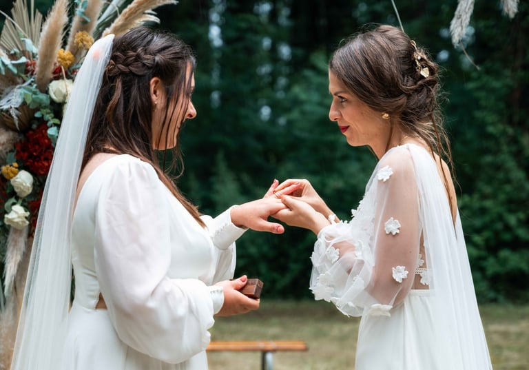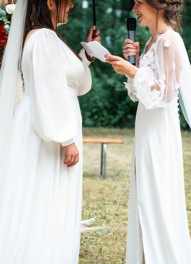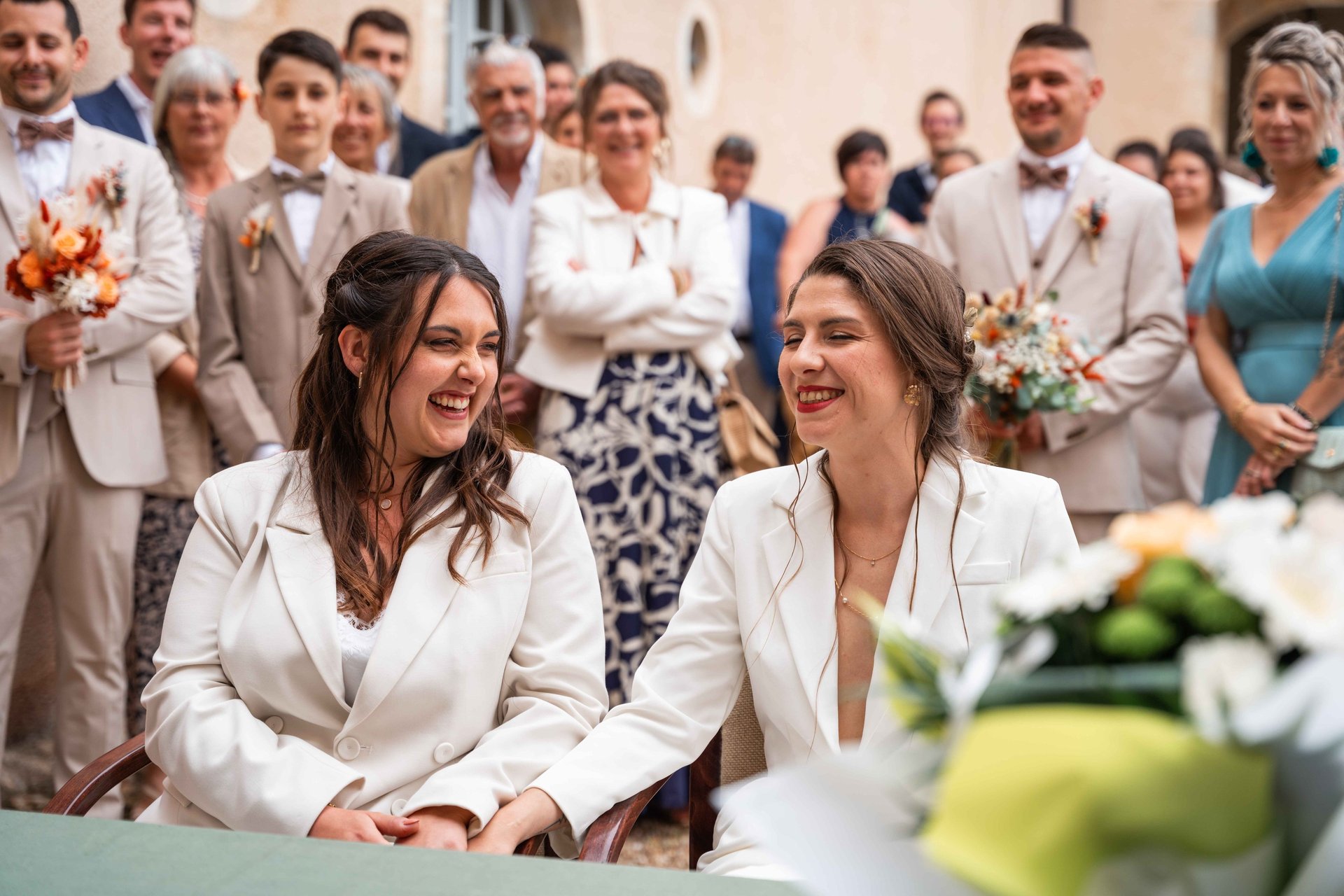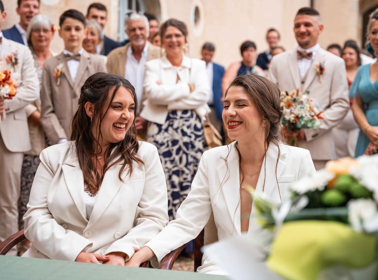 On perçoit tout de suite que nos deux mariées se sont bien trouvées, elles sont par ailleurs très bien entourées, en témoignent les nombreux discours touchants lors de la cérémonie laïque.