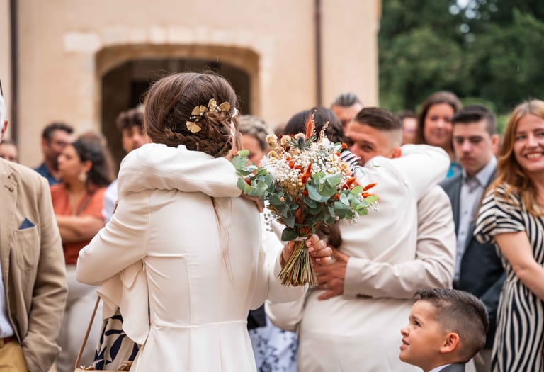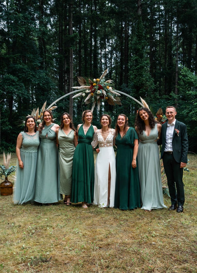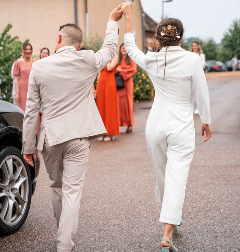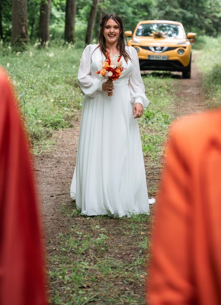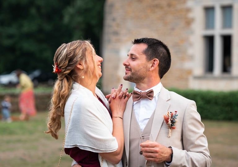 Amandine nous a donc contacté pour réaliser leur mariage, et c'est avec plaisir que nous avons pu le leur réaliser ! D'ailleurs, Emy était l'une des témoins de Elsa, nous avons donc pu revoir nos mariés 2 ans après, c'était super :)