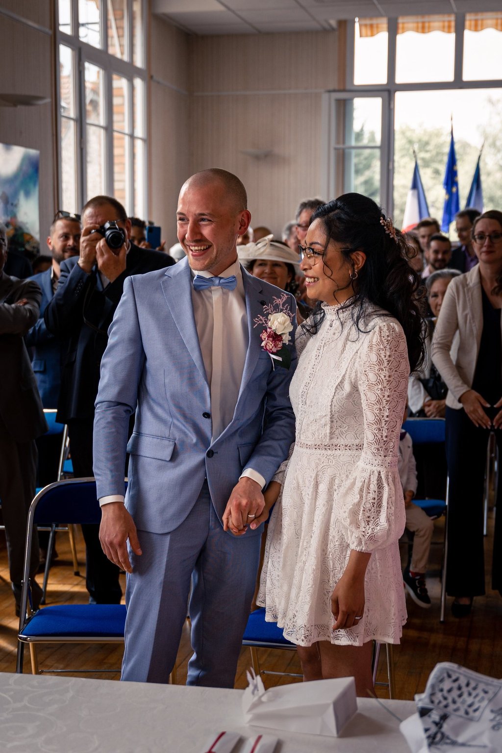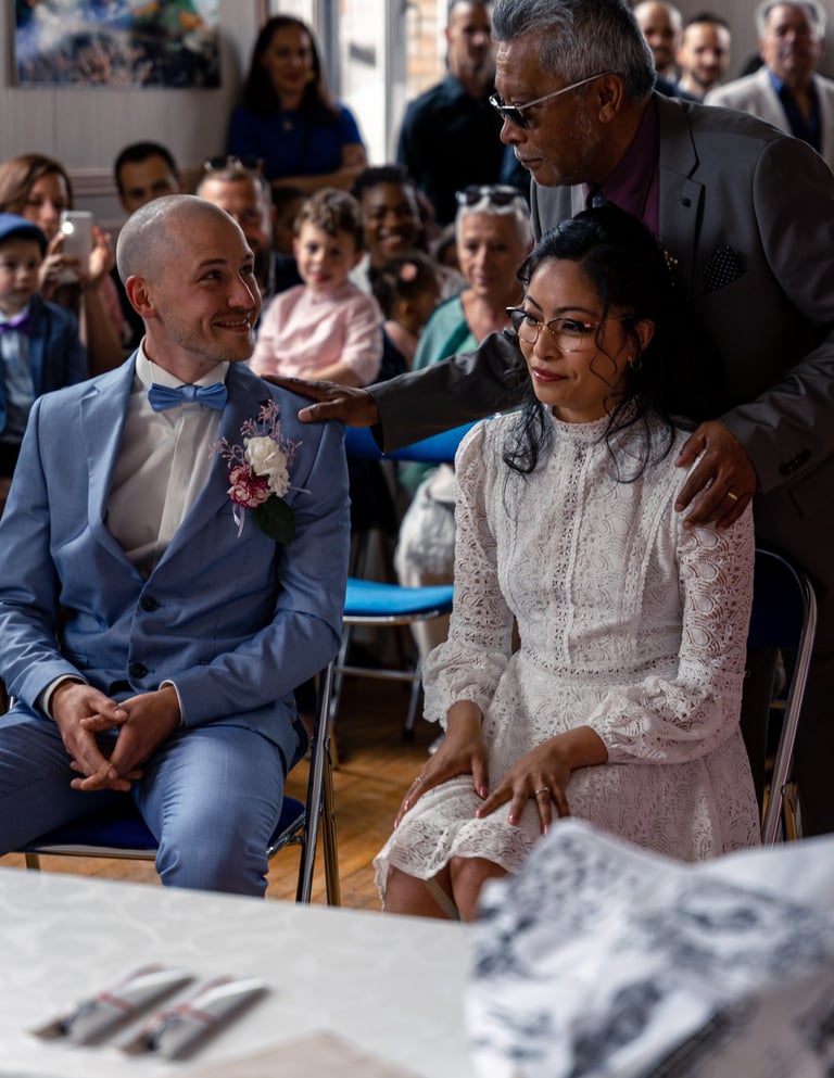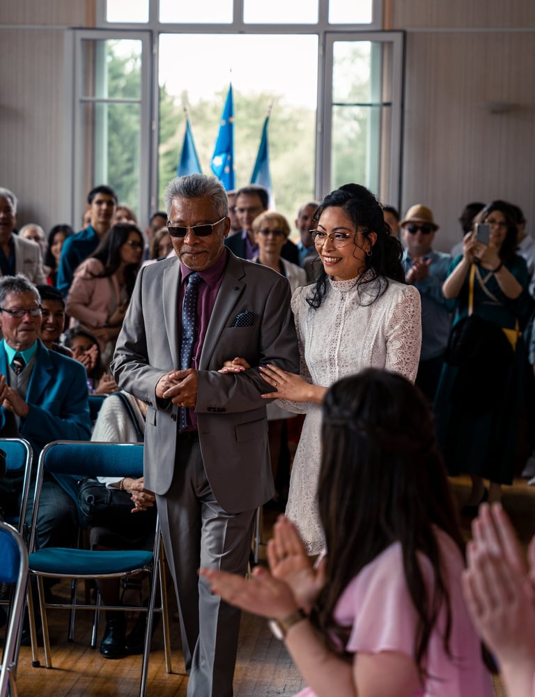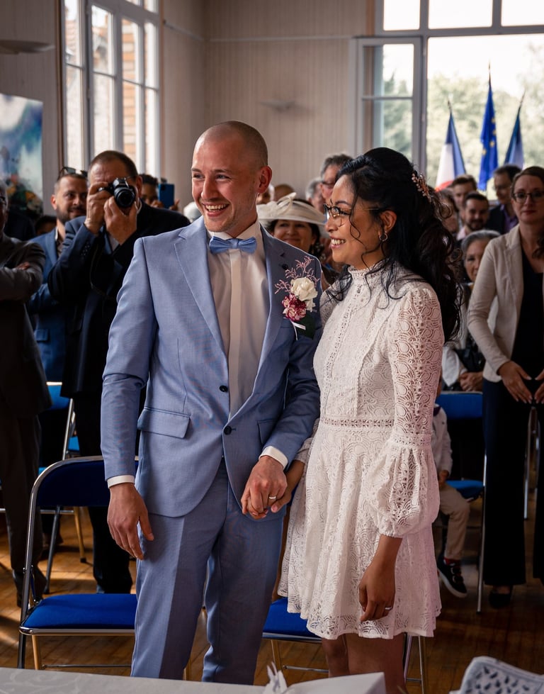 Pour la petite histoire, Emy & Laurent se sont rencontrés dans un bus, comme des adolescents, et se sont mariés à la mairie de Maurecourt (78).