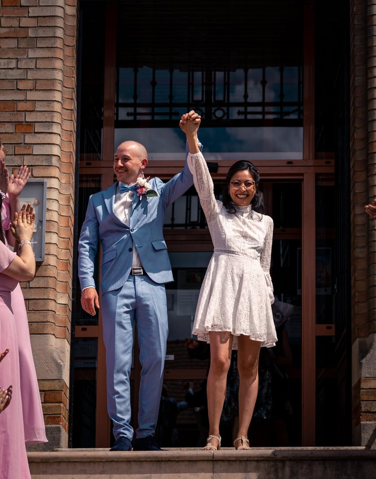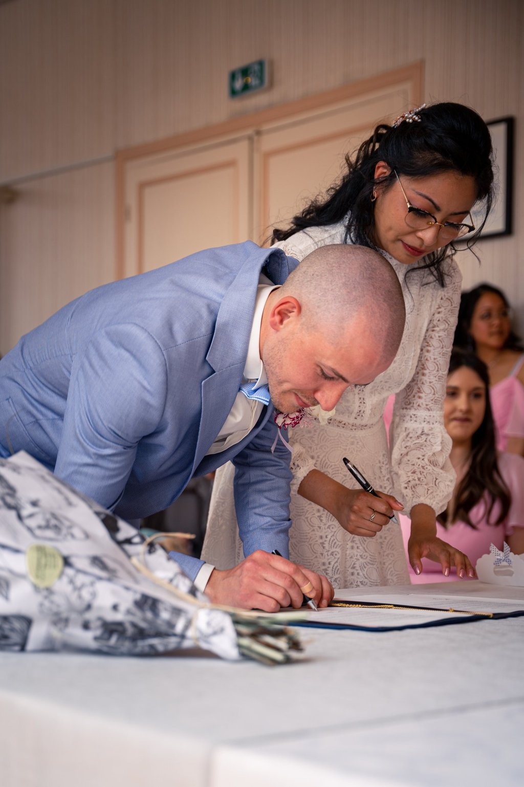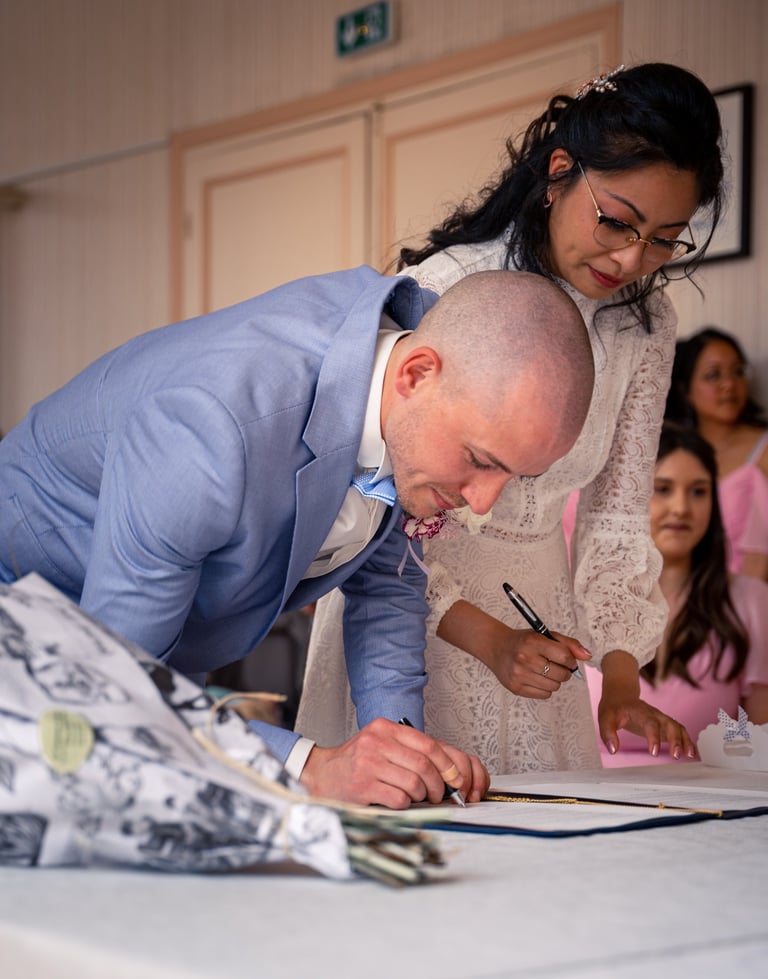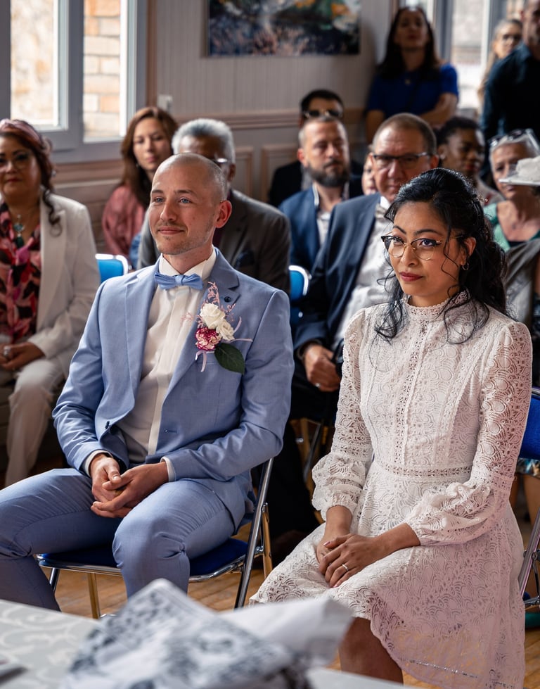 Pour la petite histoire, Emy & Laurent se sont rencontrés dans un bus, comme des adolescents, et se sont mariés à la mairie de Maurecourt (78).